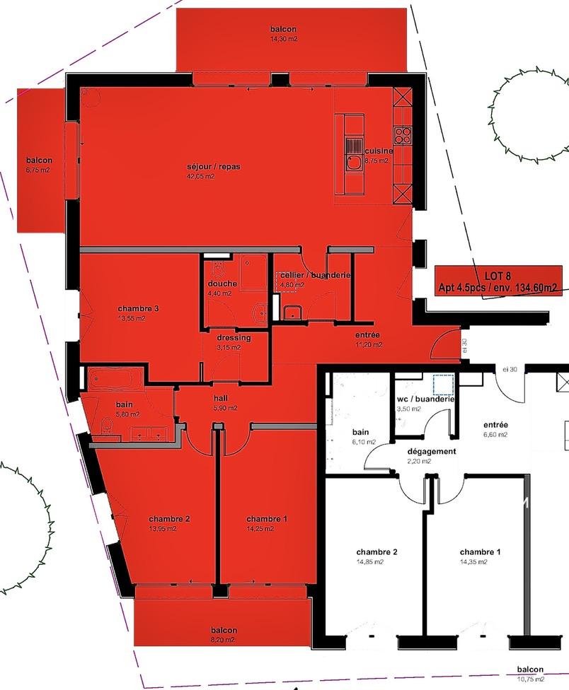 Un spacieux hall d’entrée qui desservira, un cellier / buanderie, une salle d'eau / wc, mais également trois belles chambres à coucher dont une suite parentale qui profitera d'une salle d'eau / wc privative et d'un dressing. Deux des chambres bénéficieront d'un balcon de 8,2m2.