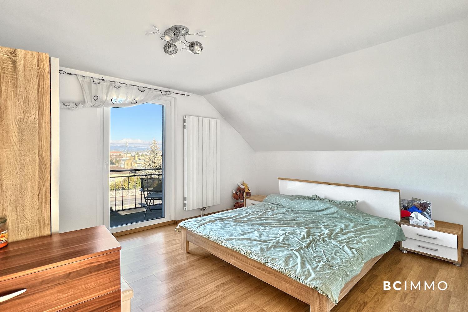 Étage : Un couloir de distribution, une salle de douche / wc ainsi que trois chambres à coucher dont deux profitant d'un balcon jouissant d'une belle vue ouverte sur les environs.