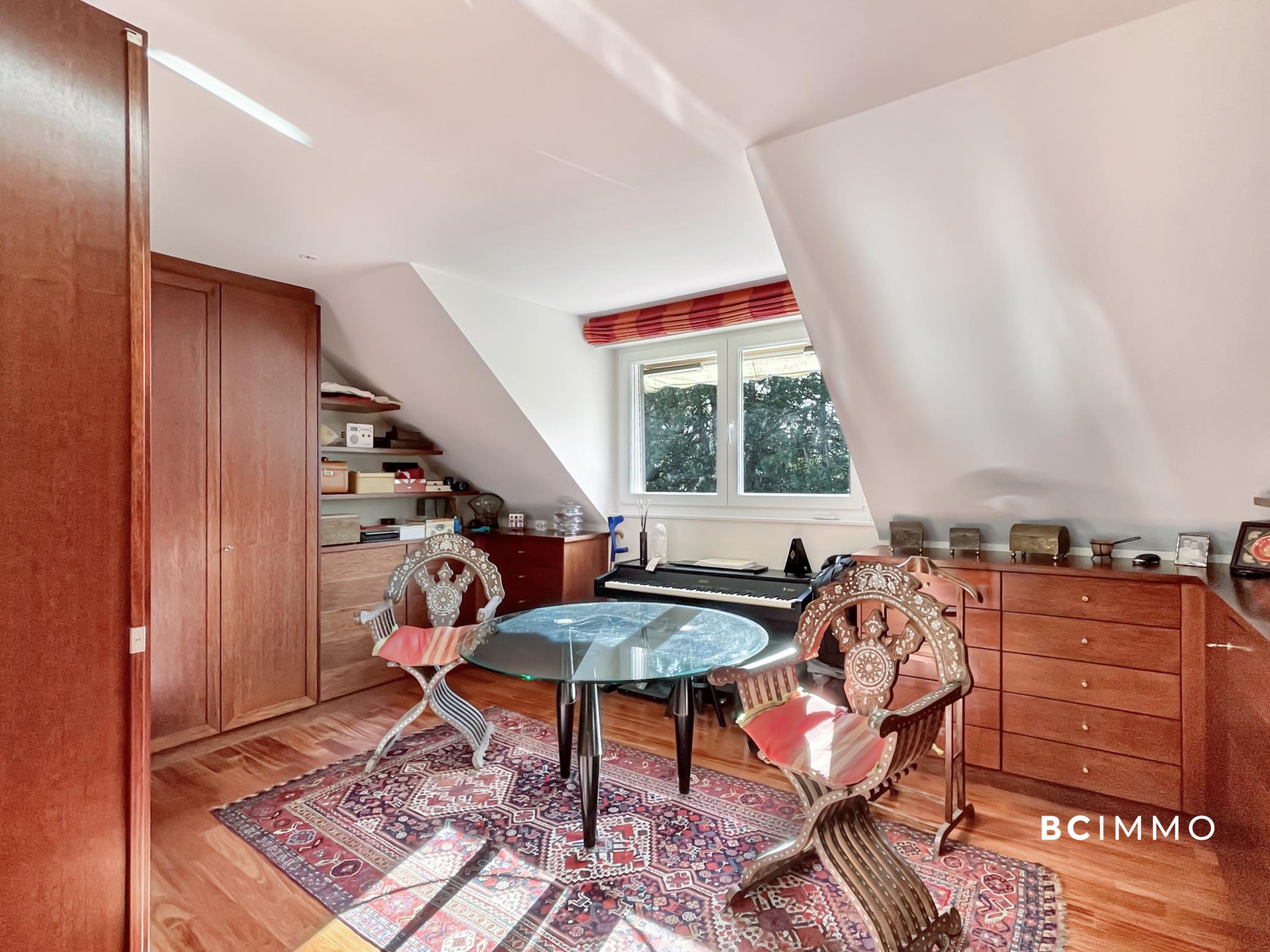 Les combles, entièrement aménagés, abritent une chambre supplémentaire et un agréable salon secondaire.