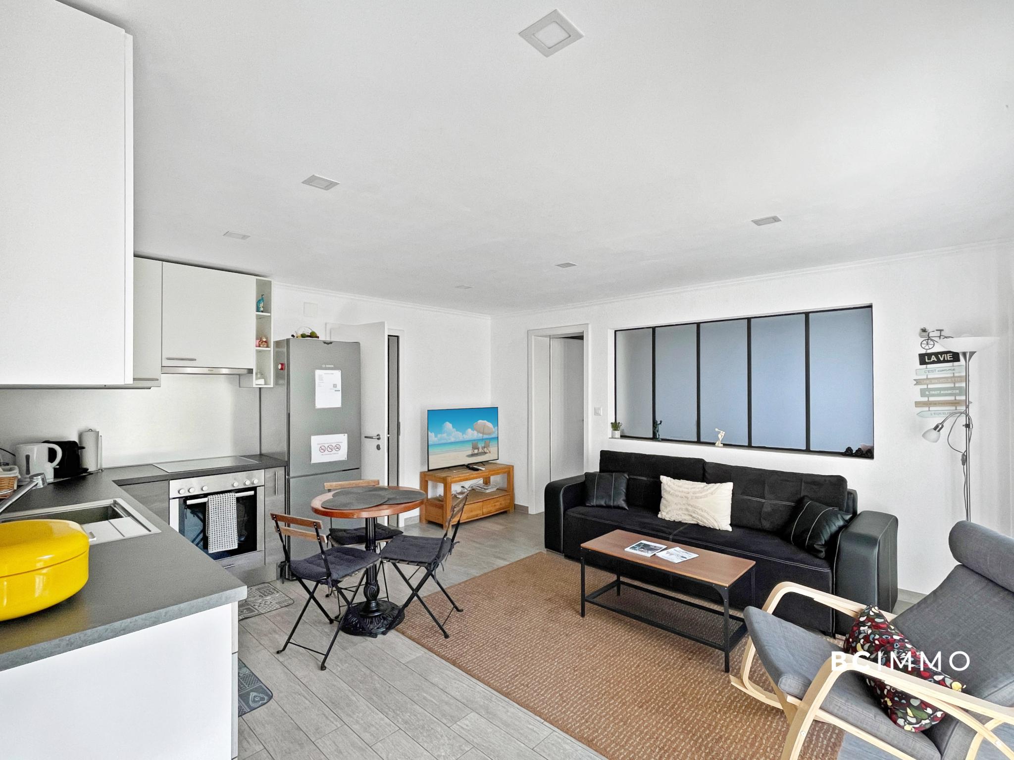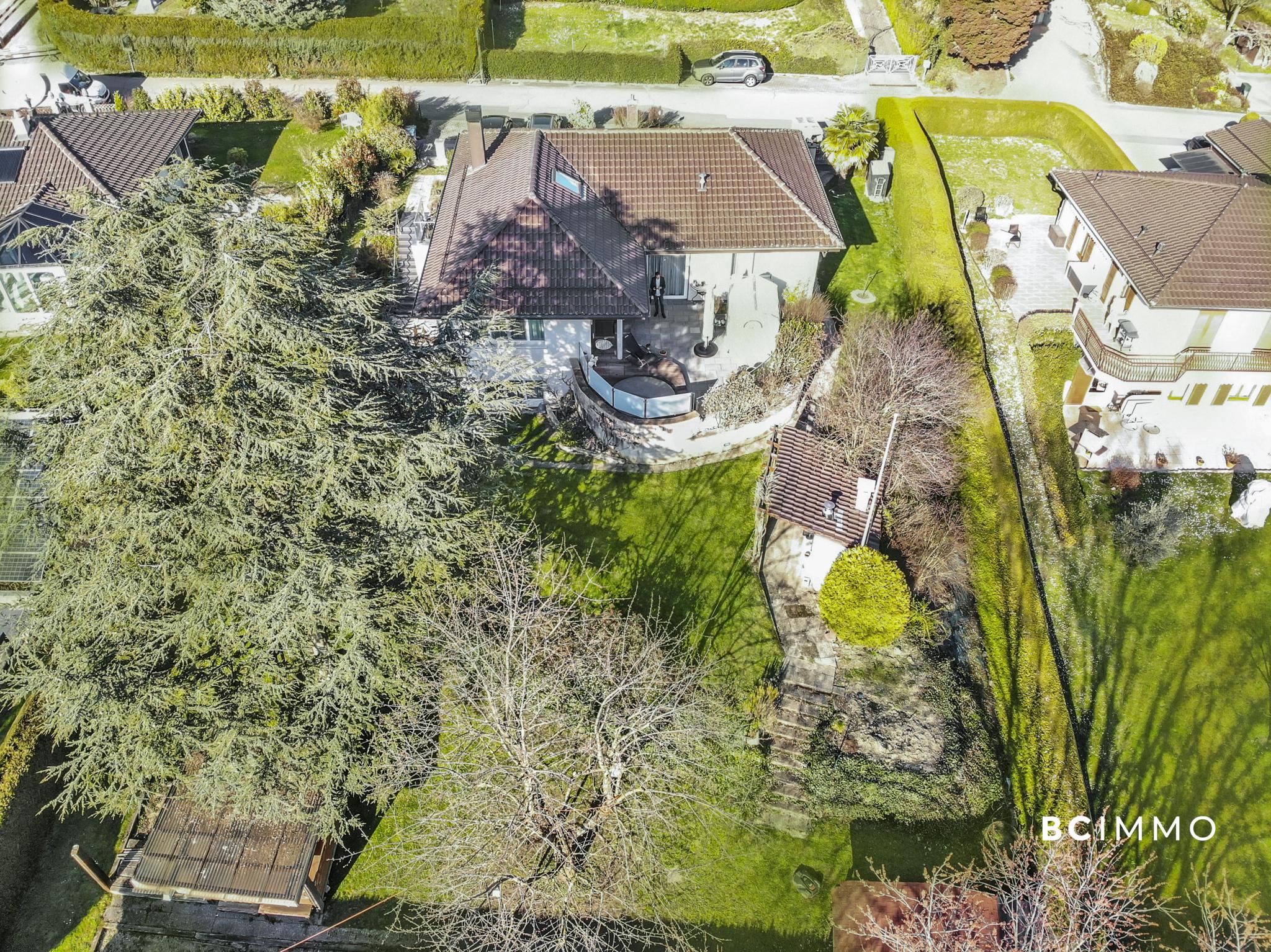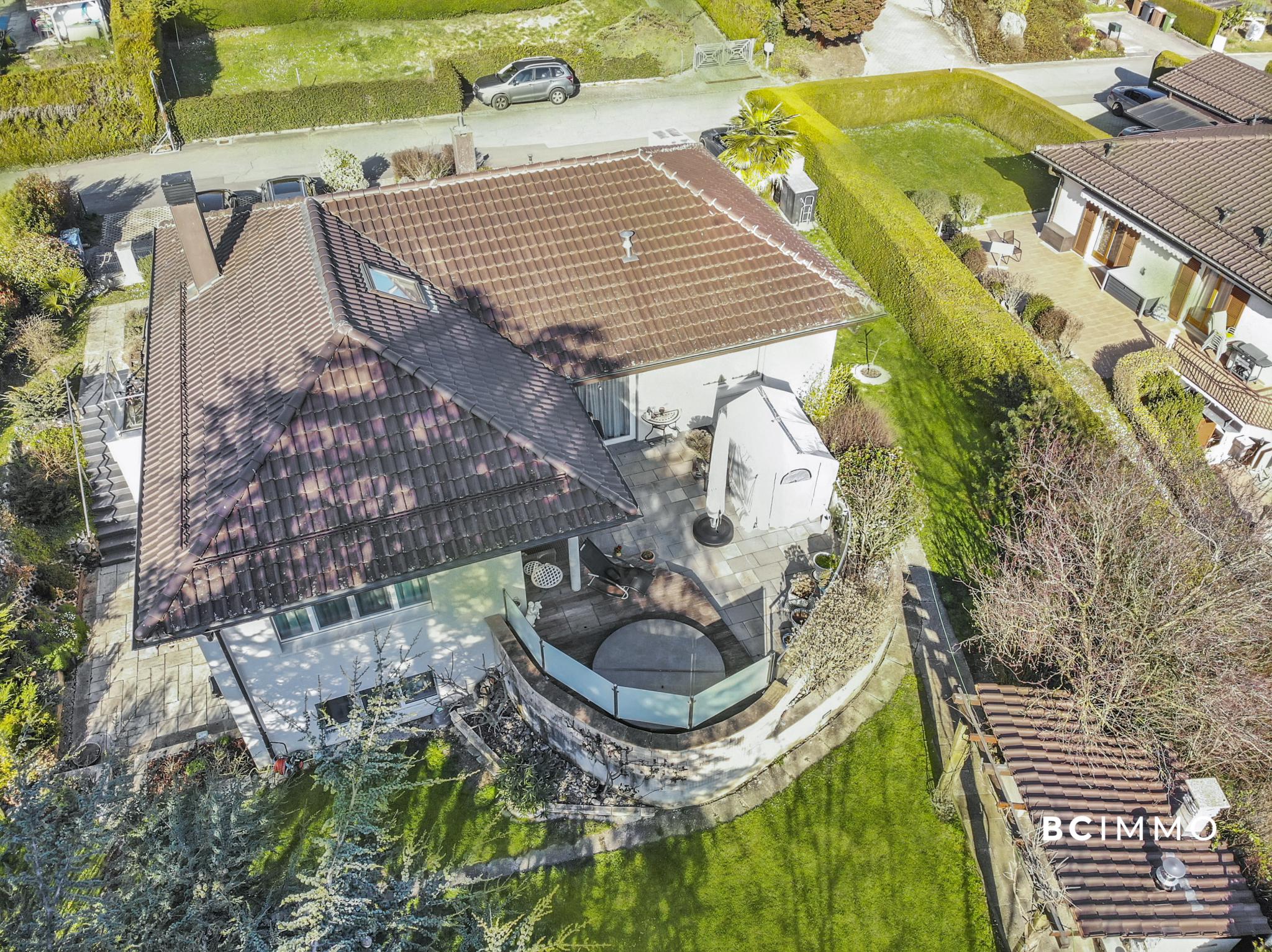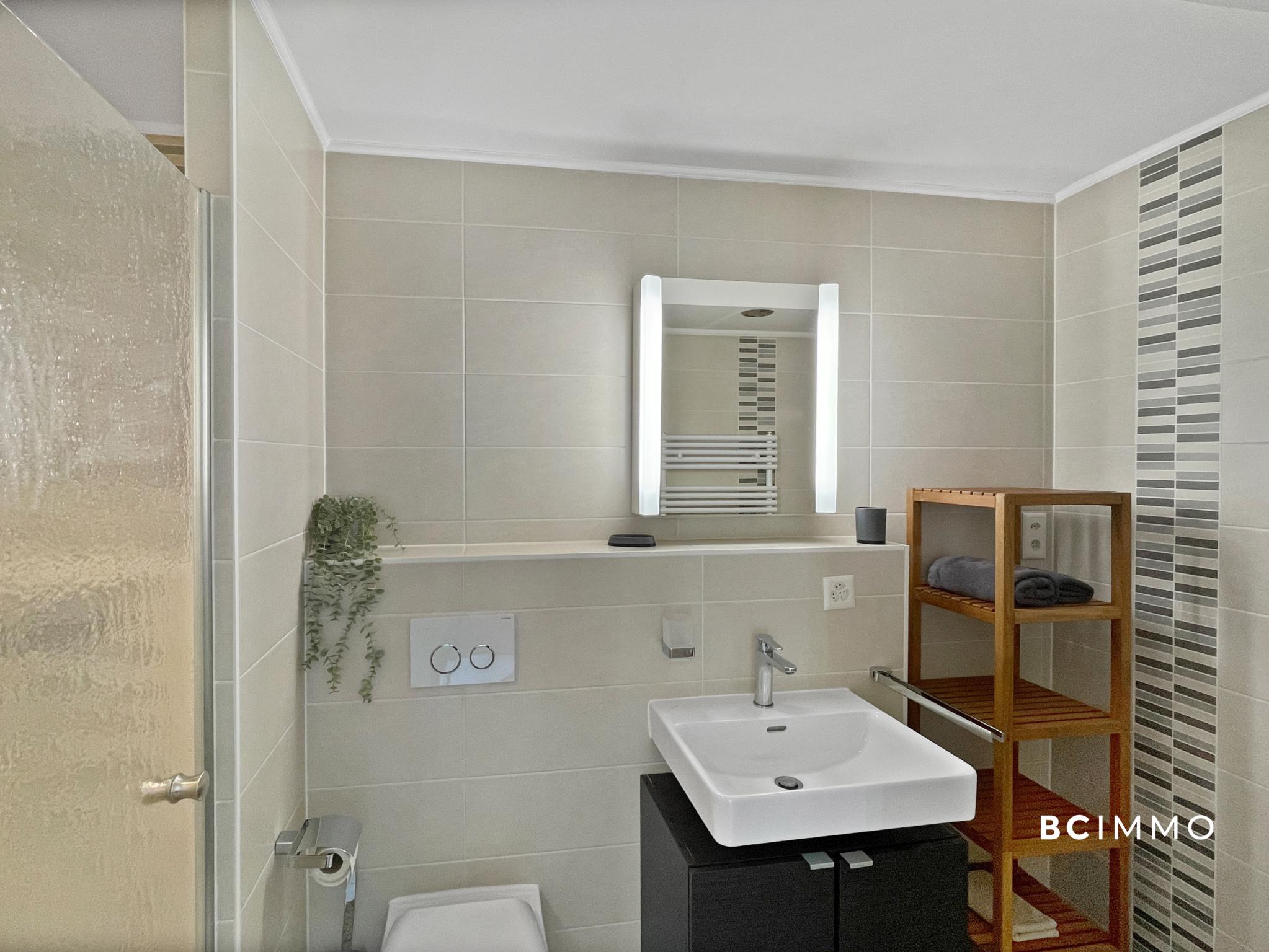 Au rez inférieur, un appartement indépendant de 2,5 pièces comprend une cuisine ouverte, une salle de douche et une chambre spacieuse ouverte sur le jardin. Cet espace peut être loué, location meublée à court terme (type Airbnb), logement pour un adolescent ou un proche, ou en espace de travail indépendant.