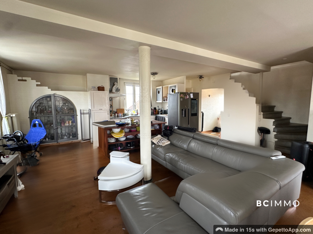 2e étage : Grande pièce de vie avec cuisine ouverte, balcon, buanderie, salle de douche