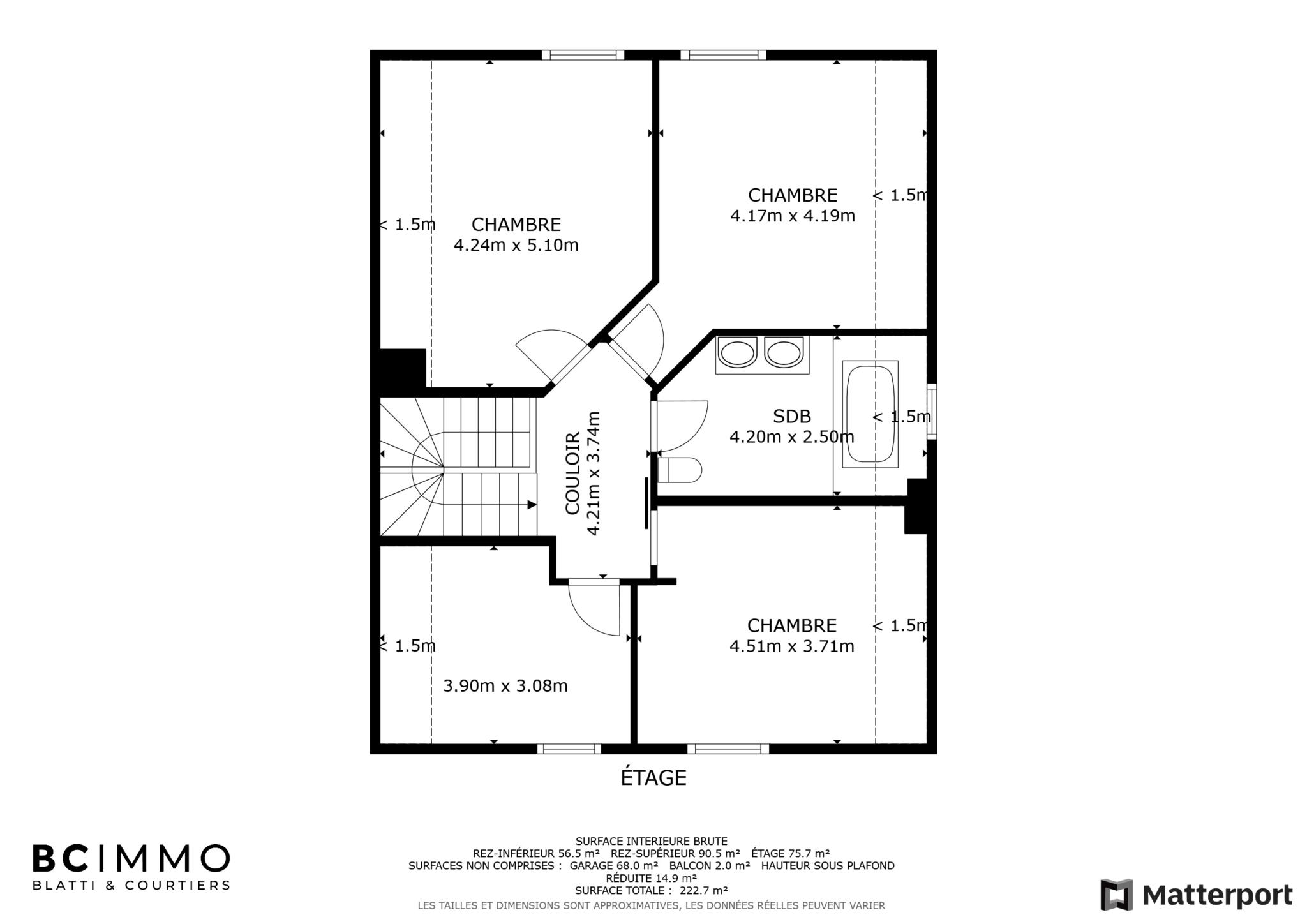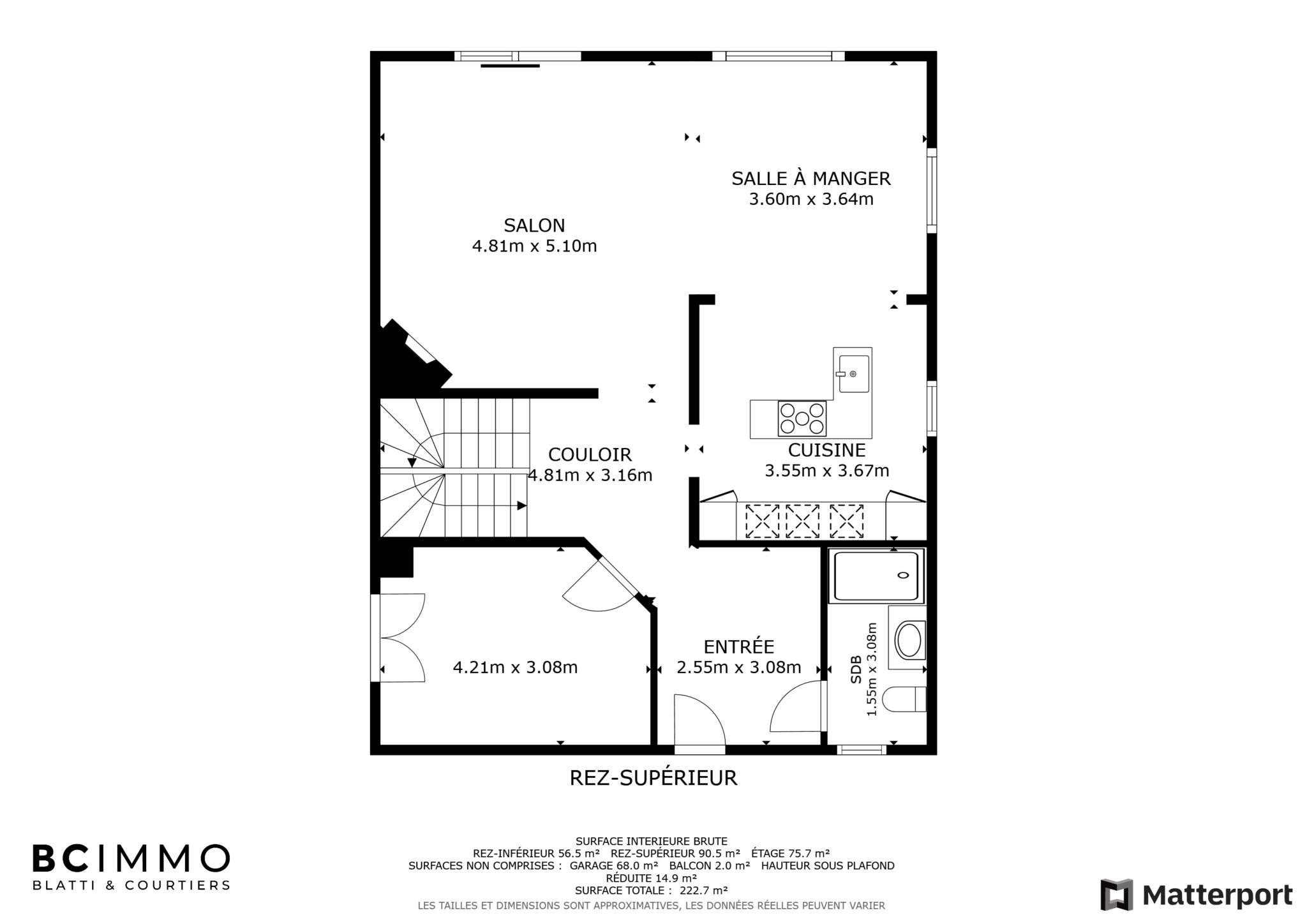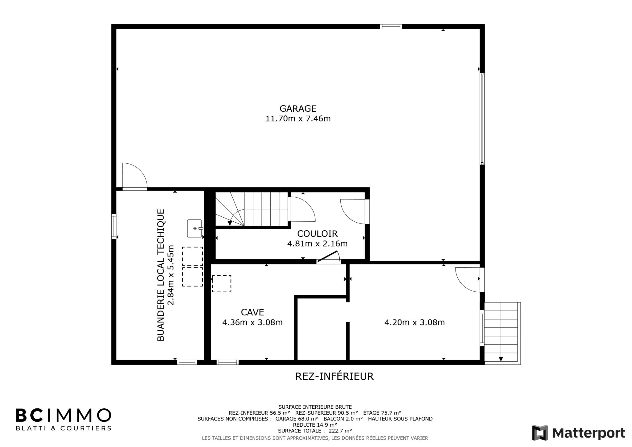 Ce niveau abrite un vaste garage pour trois véhicules, un local technique, une grande buanderie équipée ainsi qu’une cave. Un espace brut, prêt à être aménagé, permet la création d’un studio indépendant ou d’un local commercial selon vos besoins.