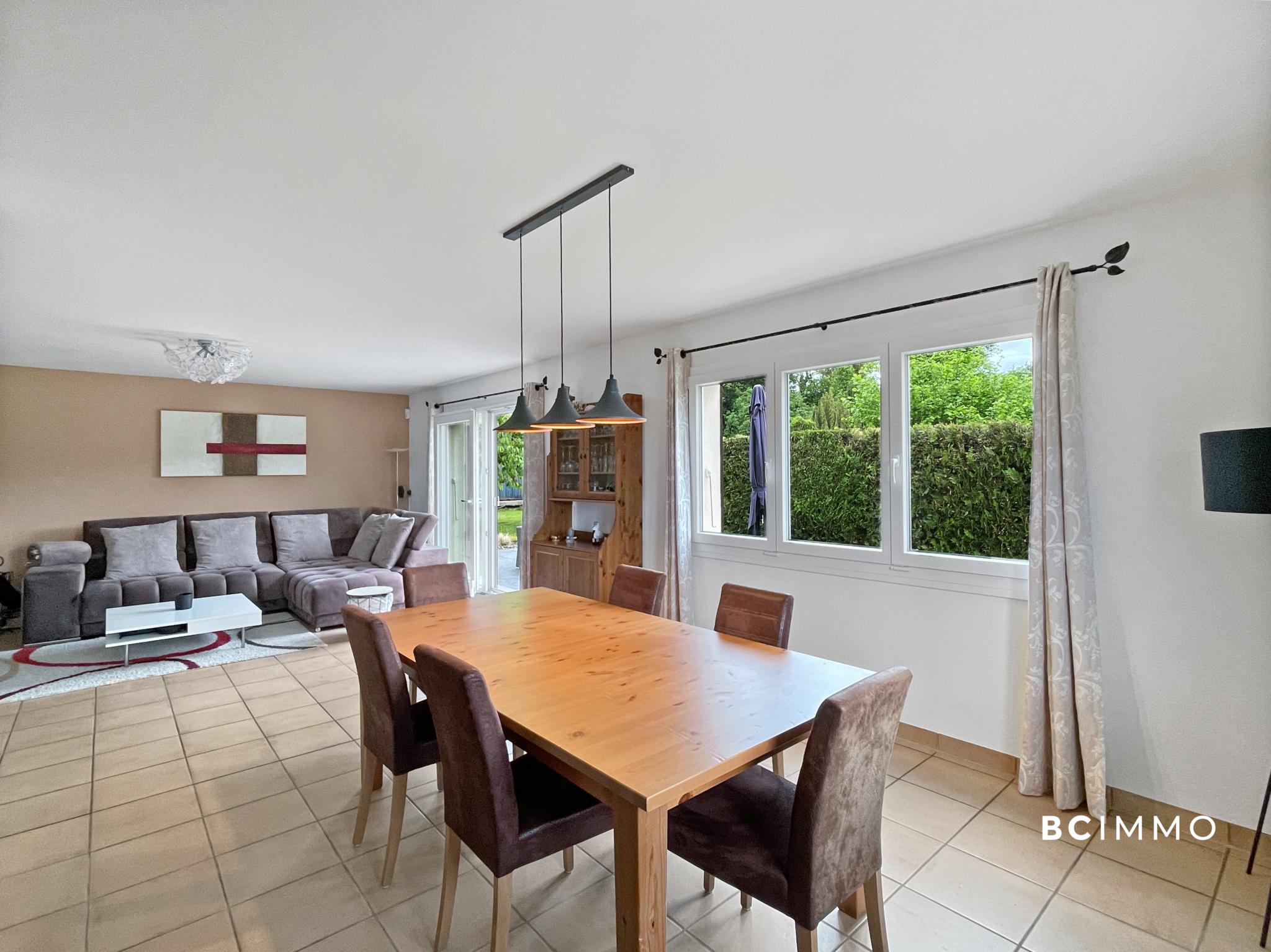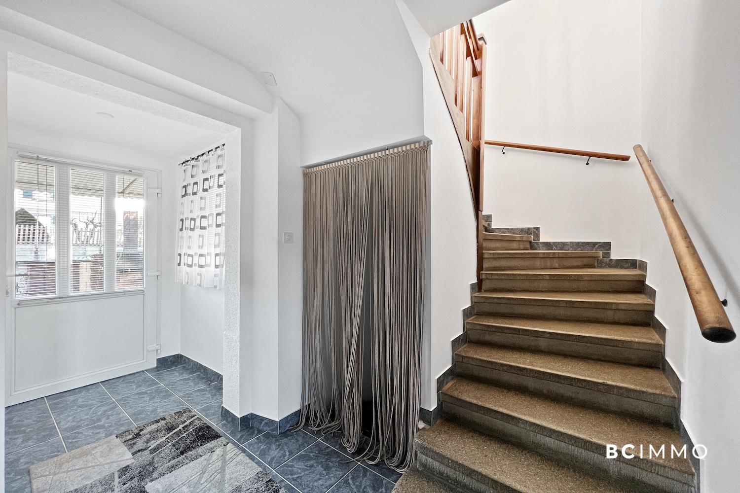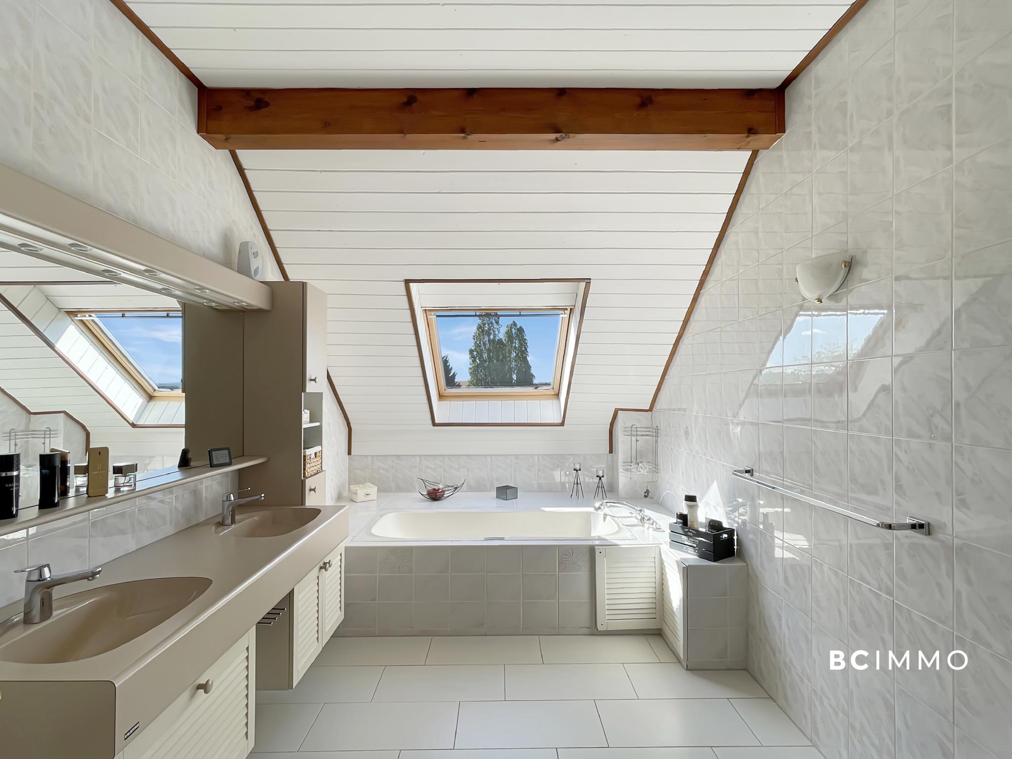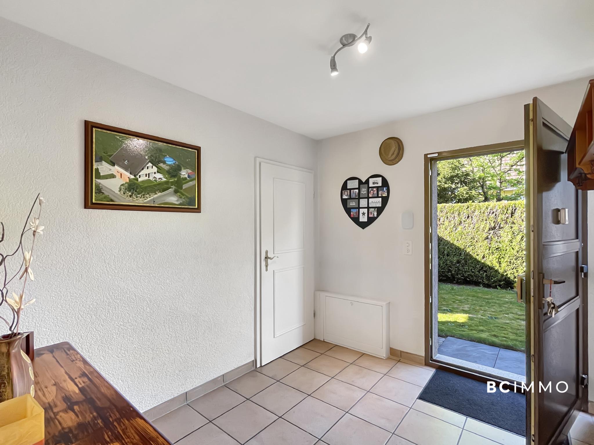 Deux terrasses orientées sud et est permettent de profiter pleinement de la lumière et de la tranquillité environnante. Le jardin, joliment arboré, s’étend autour de la maison et offre plusieurs espaces de détente. Cinq places de stationnement extérieures complètent les prestations.